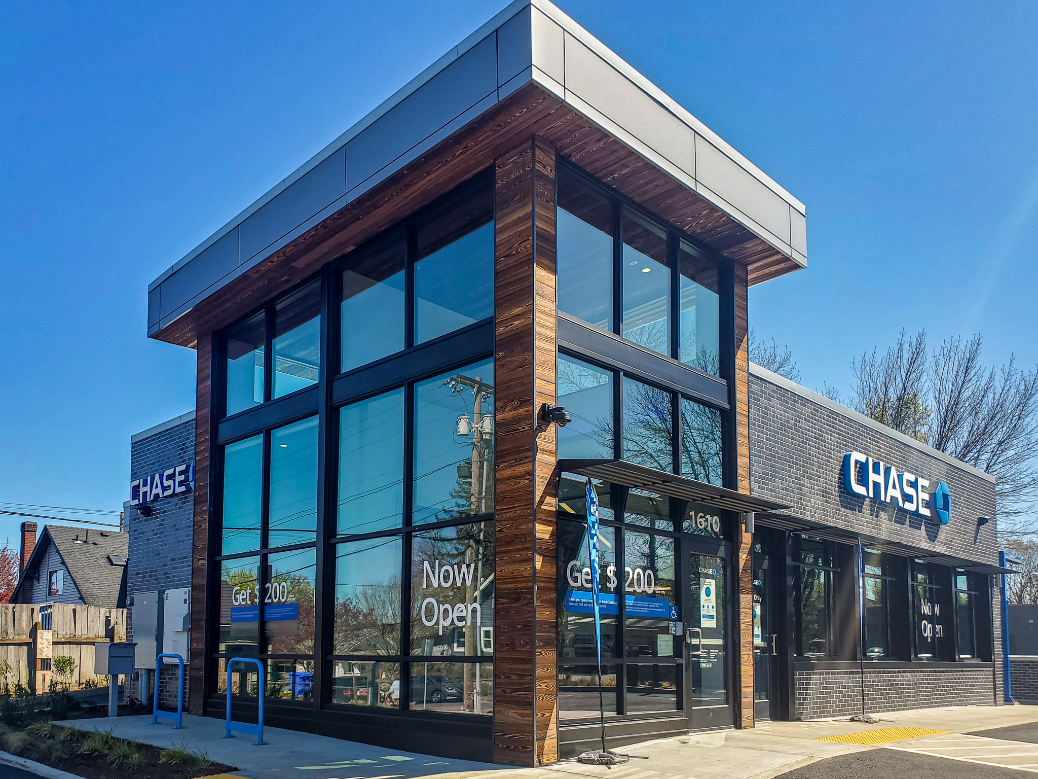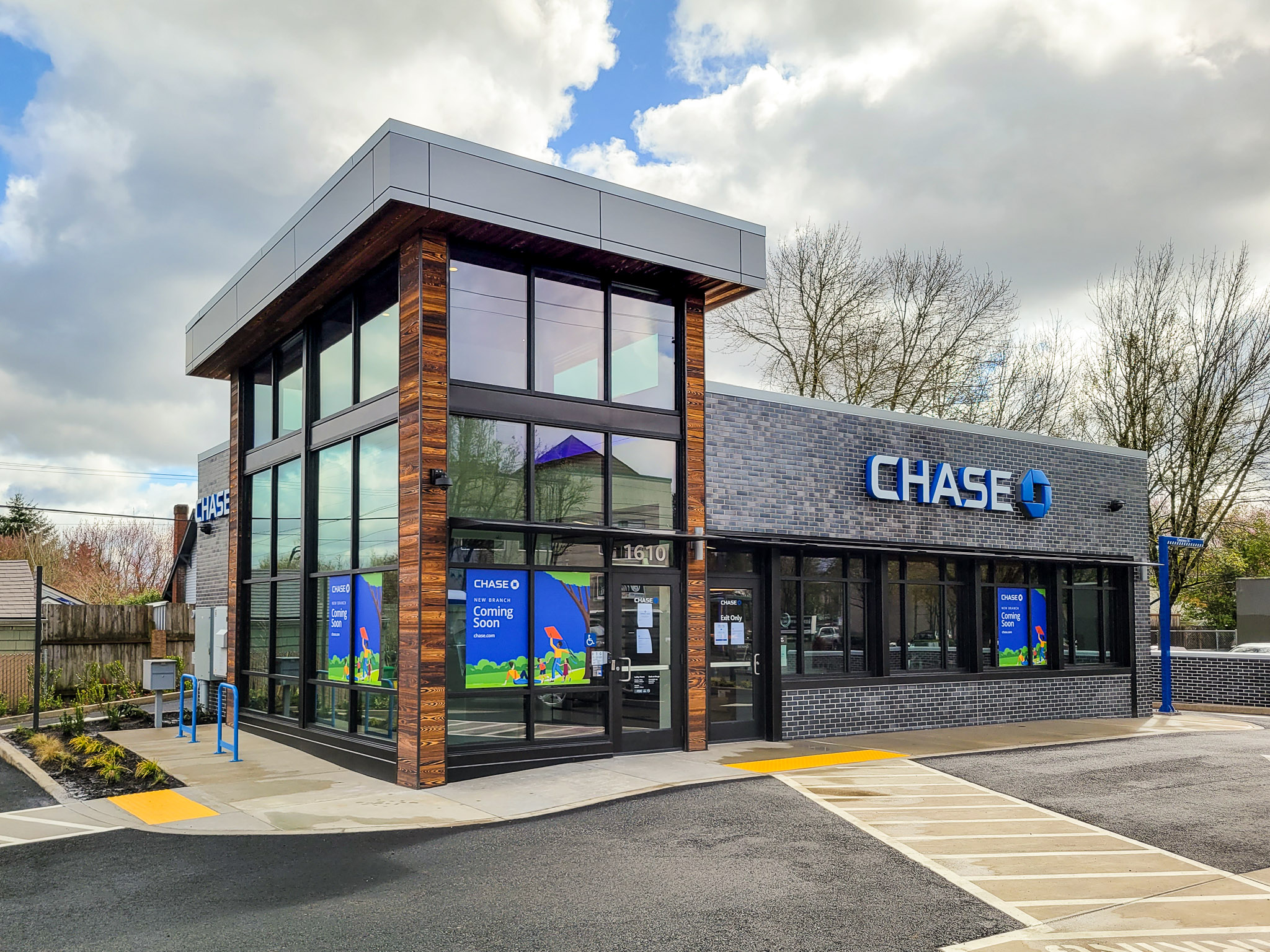 commercial Chase Bank A custom version of a Chase Bank branch on a very challenging location in the Sellwood neighborhood of Portland.