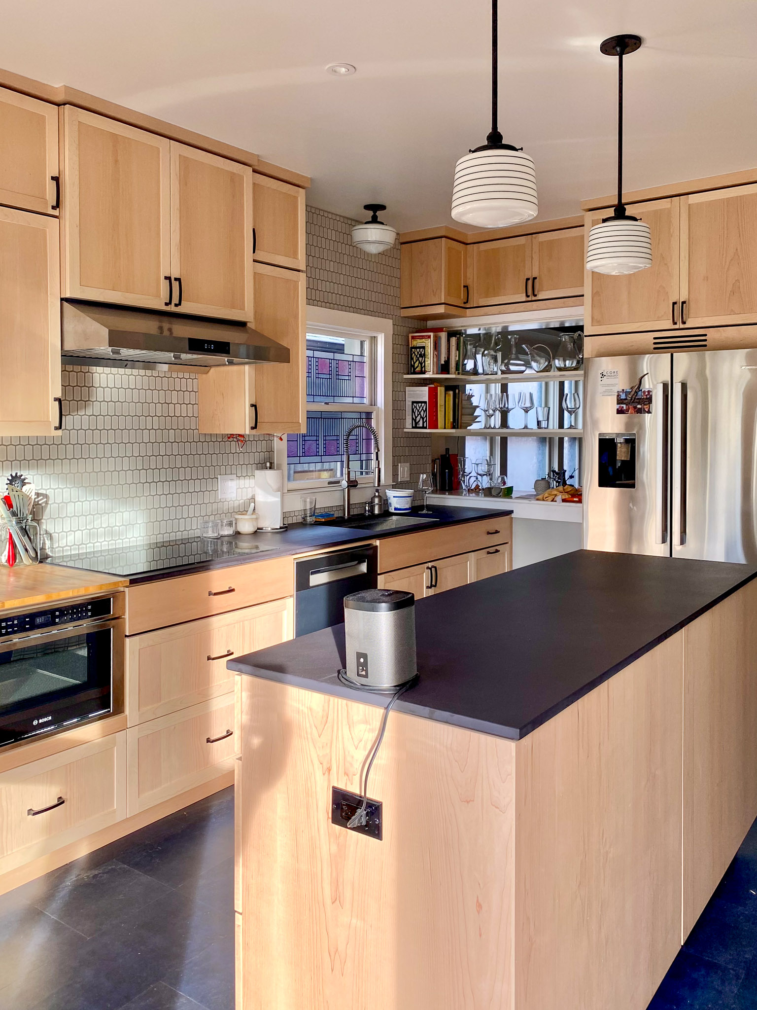 I consulted on this innovative project in a small Portland home. The client came having done his research, and had strong and excellent ideas to contribute, along with a firm sense of his goals and limitations. I helped ensure everything came together aesthetically and technically. It was a wonderful collaboration.