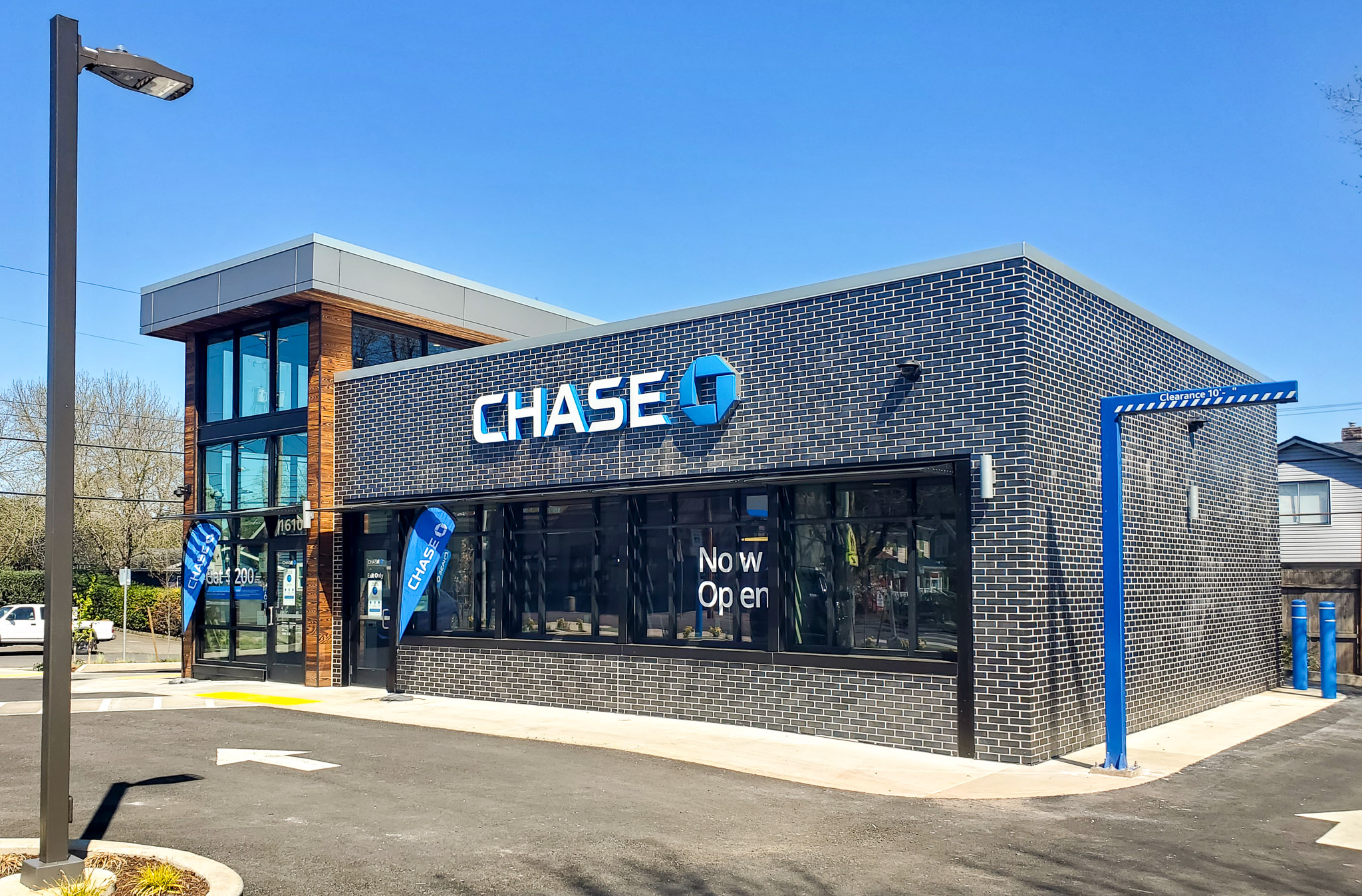 commercial Chase Bank A custom version of a Chase Bank branch on a very challenging location in the Sellwood neighborhood of Portland.